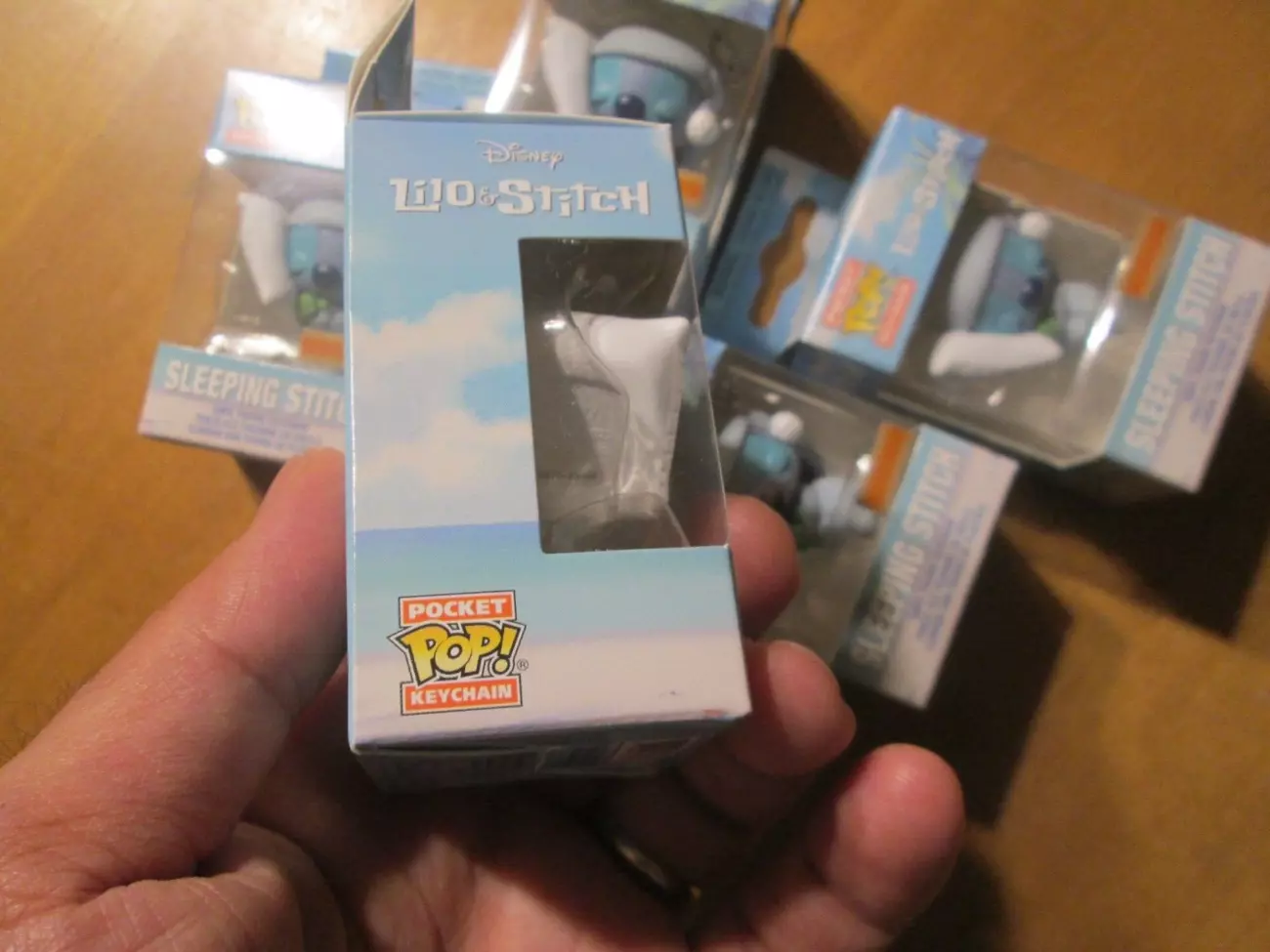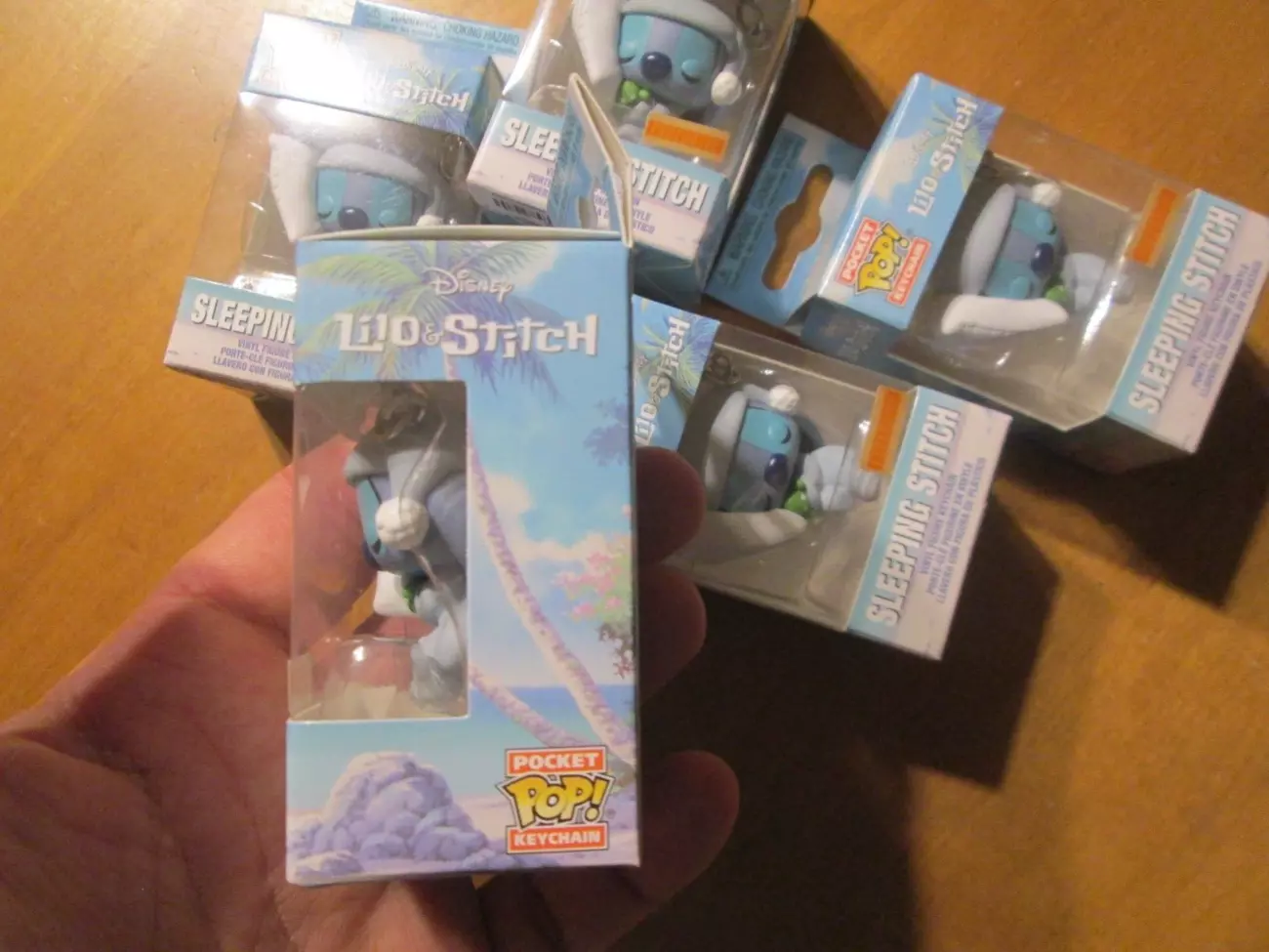 На брелке изображен спящий Стич в пижаме.