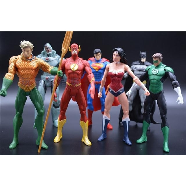 Супергерои Лига справедливости Бэтмен, Чудо женщина, Супермен, Зеленый Фонарь, Киборг, Аквамен, Флэш игровые фигурки 6шт ПВХ 19см