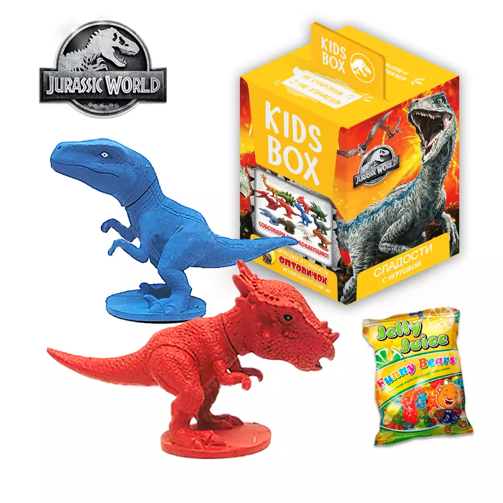 Кидс бокс - Свитбокс коллекционная фигурка "Mир юрского периода" жевательный мармелад с натуральным соком Пусть герои знаменитого фильма очутятся у Вас дома...