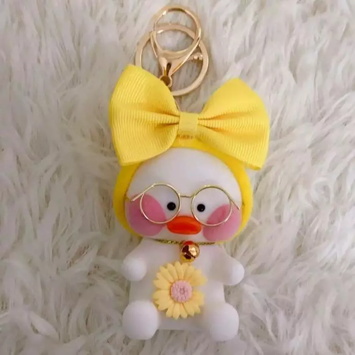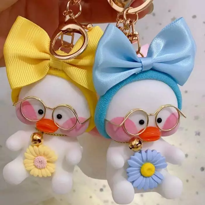 Лалафанфан Lalafanfan мини утенок Белая утка с желтым бантом обнимает маргаритки Мягкие нежные милые трендовые брелки 10 см