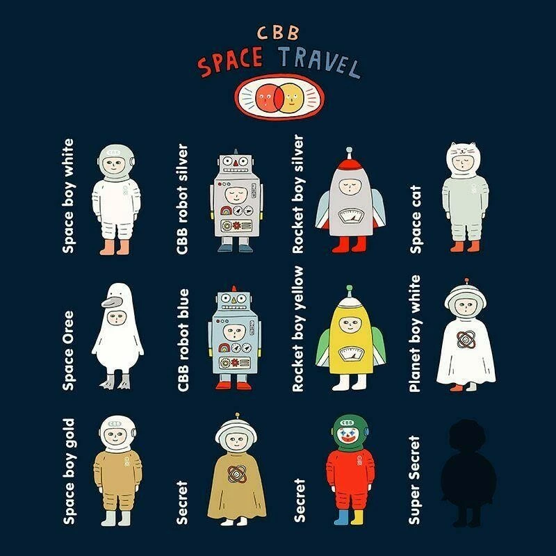 В коллекции: Rocket boy yellow, Space boy white, Space boy gold, Rocket boy silver, Space Oree, Planet boy white, Secret, Space cat, Secret, CBB robot silver, Super Secret, CBB robot blue.