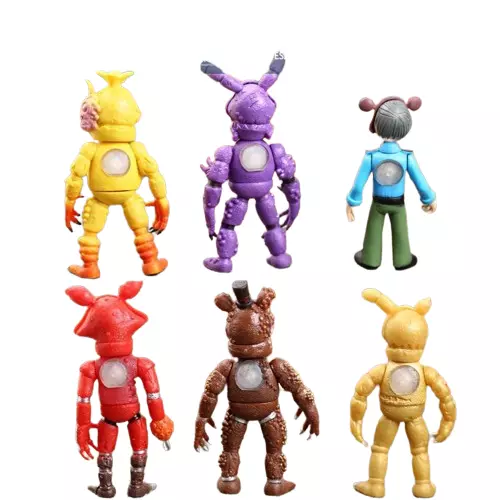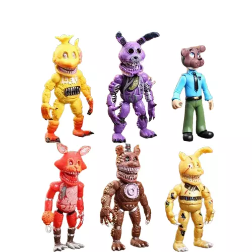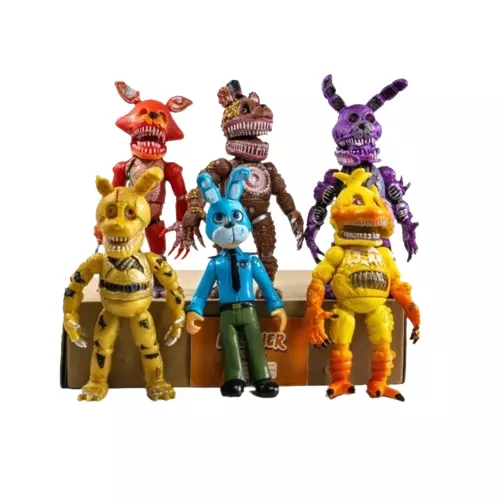 Набор фигурок "Пять ночей Фредди" - это увлекательный коллекционный набор аниматроник из сериала "Пять ночей у Фредди". Каждая фигура олицетворяет одно из проявлений — имеющихся в игре, и повторяет возникновение страха и интриги, характерной для этого явления. Особенность этого набора – возможность изменять маски между персонажами, содержащими взаимодействие и творческие возможности.