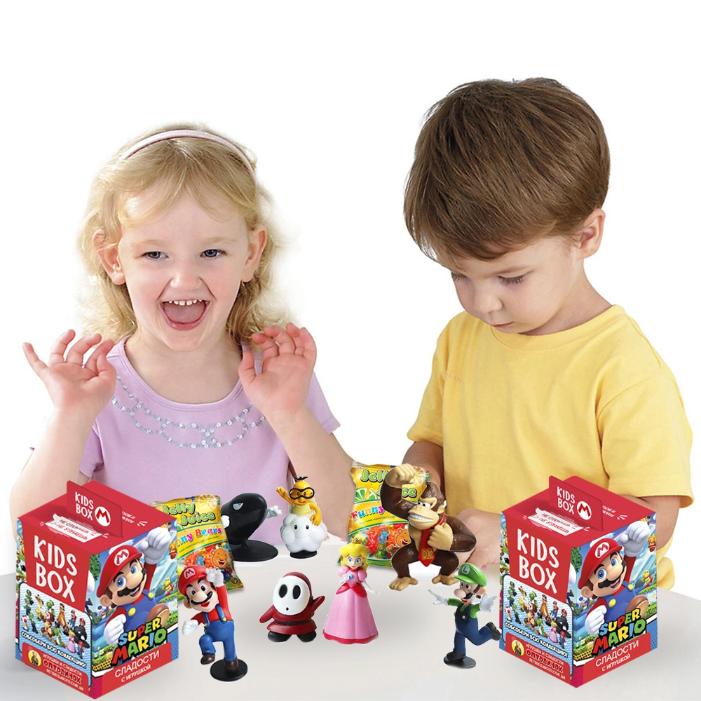 Кидс бокс - Свитбокс коллекционная фигурка "Super Mario" мармелад и игрушка Марио, размер коробочки 9*5,5*5,5 см