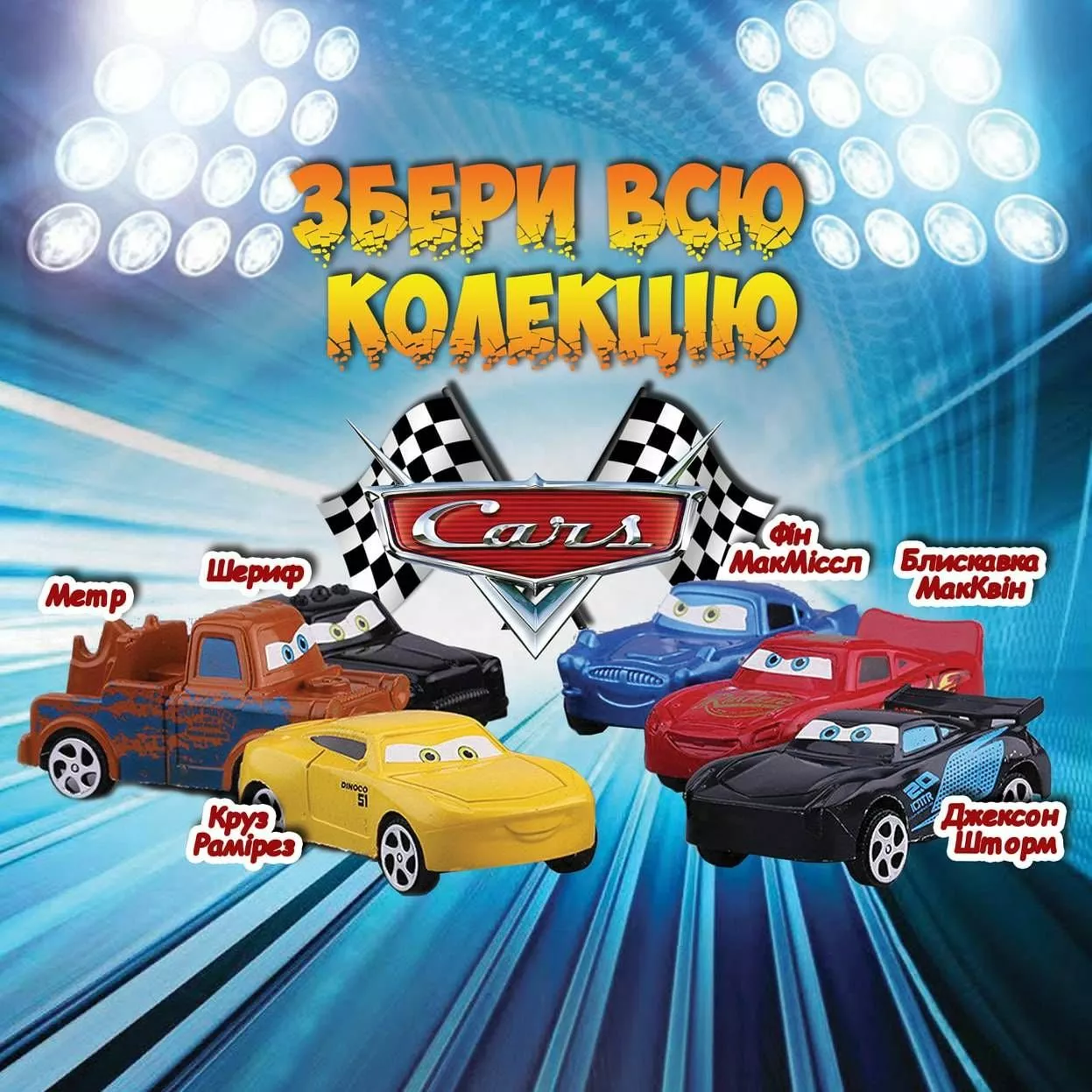 Коллекция по мотивам приключений лучших друзей знаменитого гонщика Молнии Маккуина и грузовика Мэтра, самого душевного жителя городка Радиатор-Спрингс.