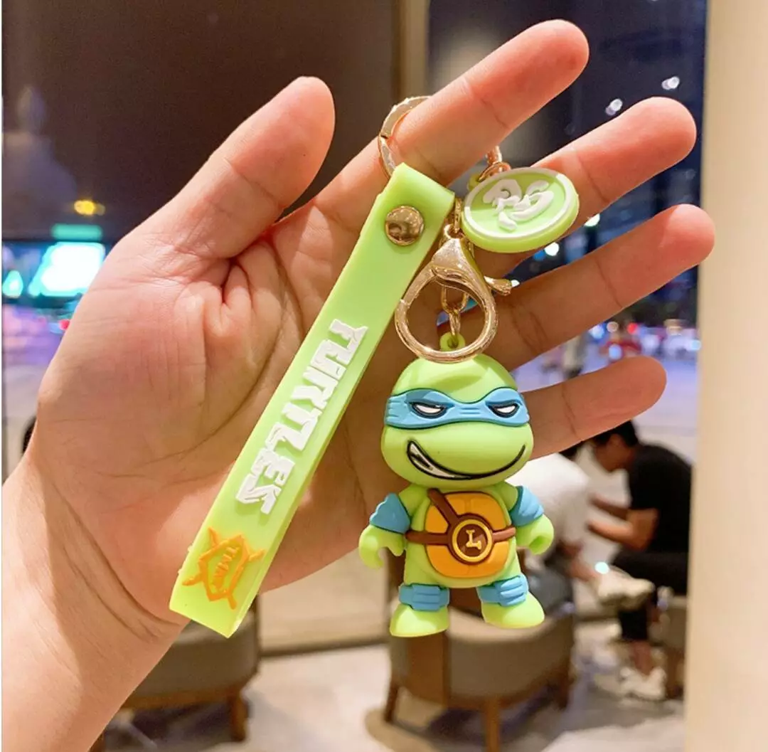 Брелок - не только приятная, но и полезная мелочь: украшает сумочку или рюкзак, подчёркивает индивидуальность, поднимает настроение, не даёт связке ключей затеряться в глубине ранца. Брелок представлен в виде фигурки персонажа из мультфильма "Черепашки Ниндзя".