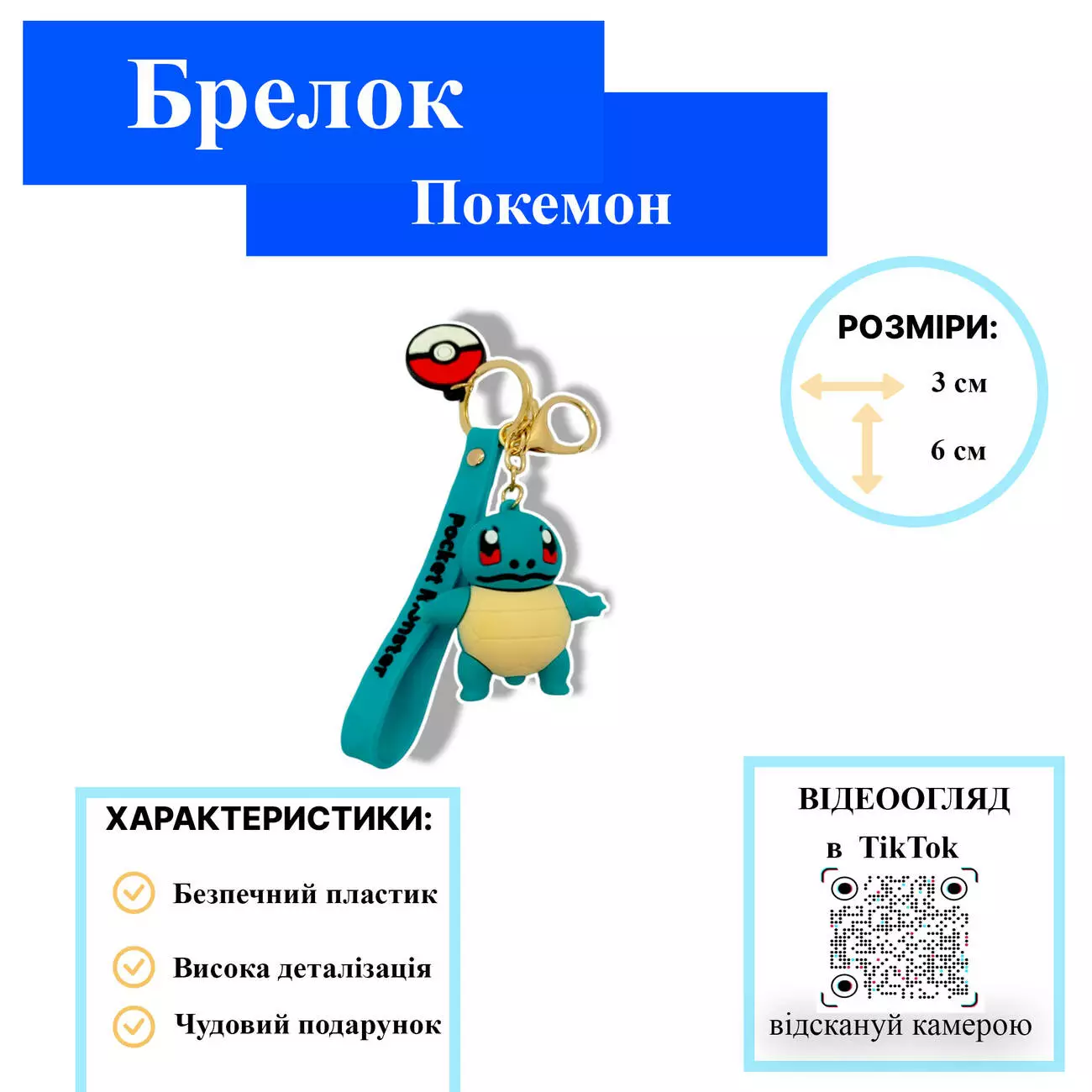 Уникальный брелок на рюкзак, ключи Покемон Черепаха Джени POKEMON 6см