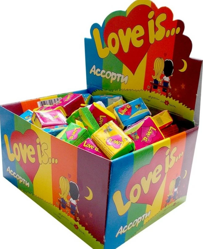 Love is Лове ис Любовь это упаковка жевательной резинки Ассорти жевательная резинка 420 г жевательная жвачка блок 100 шт